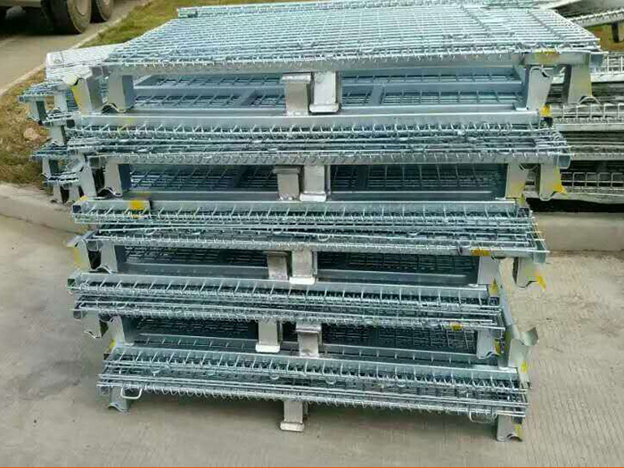 仓储笼四周由冷拔丝焊接而成,底部由专用的U型槽钢焊接组成,用弹簧把四周网片及底架组成的特殊形式可装货的物流容器。仓储笼也叫储物笼、仓库笼、蝴蝶笼,是仓储运输中重要的一类物流容器,可以归纳为敞口式包装容器,具有存放物品容量固定、堆放整洁、存放一目了然、便于库存清点等优点,同时也提高了仓储空间的有效利用率。 可折叠敞口式仓储笼是一种特殊的包装形式,具有和托盘类似的作用,但其钢材料和网状、立体的结构等特点决定仓储笼既可作立体的装卸、存运、运输工具,又可作物流周转箱使用,还可作售货工具。 可折叠敞口式仓储笼常用规格是:【1200*1000*890㎜、1000*800*840㎜、 800*600*640㎜】这三种规格,丝径是5㎜、6㎜、6.4㎜。网片焊接的网目间距一般为50*100,100*100,50*50。仓储笼可以自由折叠,不用时还可以折叠存放,节省仓库空间。金属围栏韧性好,强度高,且涂覆有保护层,耐酸碱性、耐水性及耐有机溶剂性较好。 金彩汇仓储笼的主要原材料是高线拉成的强力钢丝,一般仓储笼底部采用U型钢焊接而成,U型钢是冷轧带钢轧机轧制而成,底部四角采用冲压件一次冲制而成。仓储笼采用Q195高线作为原材料,经冷拔成型材。不仅可以用于工厂生产车间,而且可以用于超市作为展示促销和仓储,且可以在户外使用。 带有PVC板或铁板的仓储笼具有《可折叠移动密封型金属铁箱》防止小件漏掉的效果,网距离增大的仓储笼可放纸箱或轻质物品,避免了单纯用托盘对纸箱和产品的损坏,增加了产品在运输及存储过程中的稳定性和完好性。