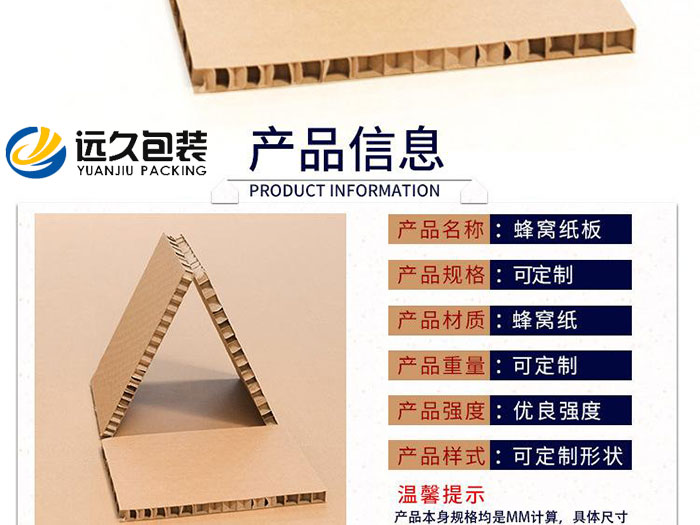 蜂窝纸板全部由可循环再生的纸材制作,可节木代木,以质轻、价廉、强度高、可回收等特性深受市场欢迎,已成为具有节省资源、保护环境的一种新型绿色包装。 由蜂窝纸板制作的包装箱是中国出口商品的理想包装,蜂窝纸板的推广应用,一方面可降低商品在流通过程中的破损率;另一方面,取代木箱,利于环保。 蜂窝纸板的性能: 1、从力学角度分析蜂窝纸板,封闭的等六边形蜂窝结构相比其它结构,能以最少的材料获得最大的受力。纸蜂窝夹芯是把无数个空心立体六角形用胶接法连接成一个整体受力件。所以蜂窝纸承载能力大,抗压性能好(纸蜂窝夹芯平压强度比瓦楞纸芯强度大20 倍以上)。 2、由于纸蜂窝夹芯的结构,吸收物体撞击能量大,所以防震性能好,隔热、隔音效果好。 3、重量轻并且省纸张,蜂窝纸板受垂直于板面的载荷时,它的弯曲刚度与同材料、同厚度的实心板相差无几,但重量却轻70~90%,而且不易变形,使得蜂窝纸板可以被广泛用于多种应用领域。(一张一平方米的纸,可以制作一张5毫米厚、一平方米大小的纸蜂窝夹芯。用纸蜂窝夹芯做包装箱,比同规格瓦楞纸包装轻三分之一)。 金彩汇4、蜂窝纸板易于切削、钻孔,可以加工成各种所需的形状和尺寸。同时,它与其它结构材料有很好的相容性,适合用作缓冲衬垫。 在全球环保低碳化包装的形式下,中国包装工业在向低碳经济转型中,提出了“以纸代木”的重大决策,环保蜂窝纸板全部由可循环再生的纸材制作,可节木代木,以前出口运输包装首选的木箱包装在很多行业已经被蜂窝纸板包装箱取代。蜂窝纸板包装箱的推广应用,一方面可降低商品在流通过程中的破损率;另一方面,取代木箱包装利于环保保护森林资源。 环保蜂窝纸板使用后可全部回收再利用。即使弃之不用,也可自然降解、吸收,是很好的绿色环保材料。蜂窝纸板由柔性的纸芯和面纸做成,具有较好的韧性和回弹性,独特的蜂窝夹芯结构提供了优异的缓冲性能,在所有的缓冲材料中具有更高的单位体积能量吸收值,高厚度的环保蜂窝纸板可替代现已大量使用的eps塑料泡沫缓冲垫。
